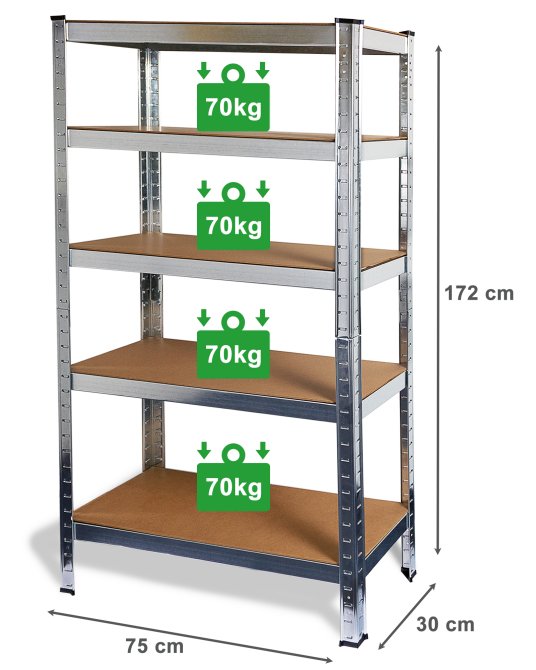 Ist das Regal einmal montiert und aufgestellt, empfehlen wir, dieses mit geeigneten Dübeln (nicht im Lieferumfang enthalten) an der Wand zu befestigen, sodass zusätzliche Stabilität geschaffen wird. Doch auch ohne dies ist unser Metallregal eine äußerst stabile und starre Konstruktion, die durch das durchaus robuste Metall sehr selbstständig steht.